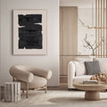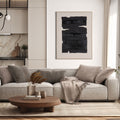 This hand-painted canvas wall art features a minimalist abstract design composed of bold, irregular black brushstrokes layered horizontally across a natural linen background. Measuring 36" x 2" x 48", the piece uses the contrast between the deep black and the warm, neutral linen to evoke a sense of calm introspection and quiet strength. Its simplicity and raw texture give it a modern, contemplative feel, making it a striking focal point in any space. A complementary design is also available and sold separately, perfect for creating a cohesive, gallery-style display.