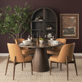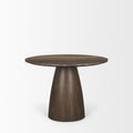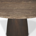 - Pedestal base in mid‑dark brown wood provides stability and refined contrast