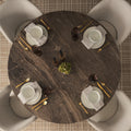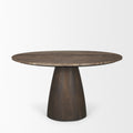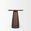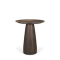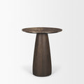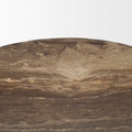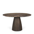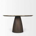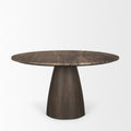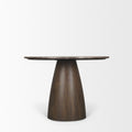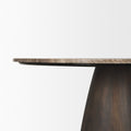 - Crafted from solid dark brown mango wood with a round cappuccino marble tabletop