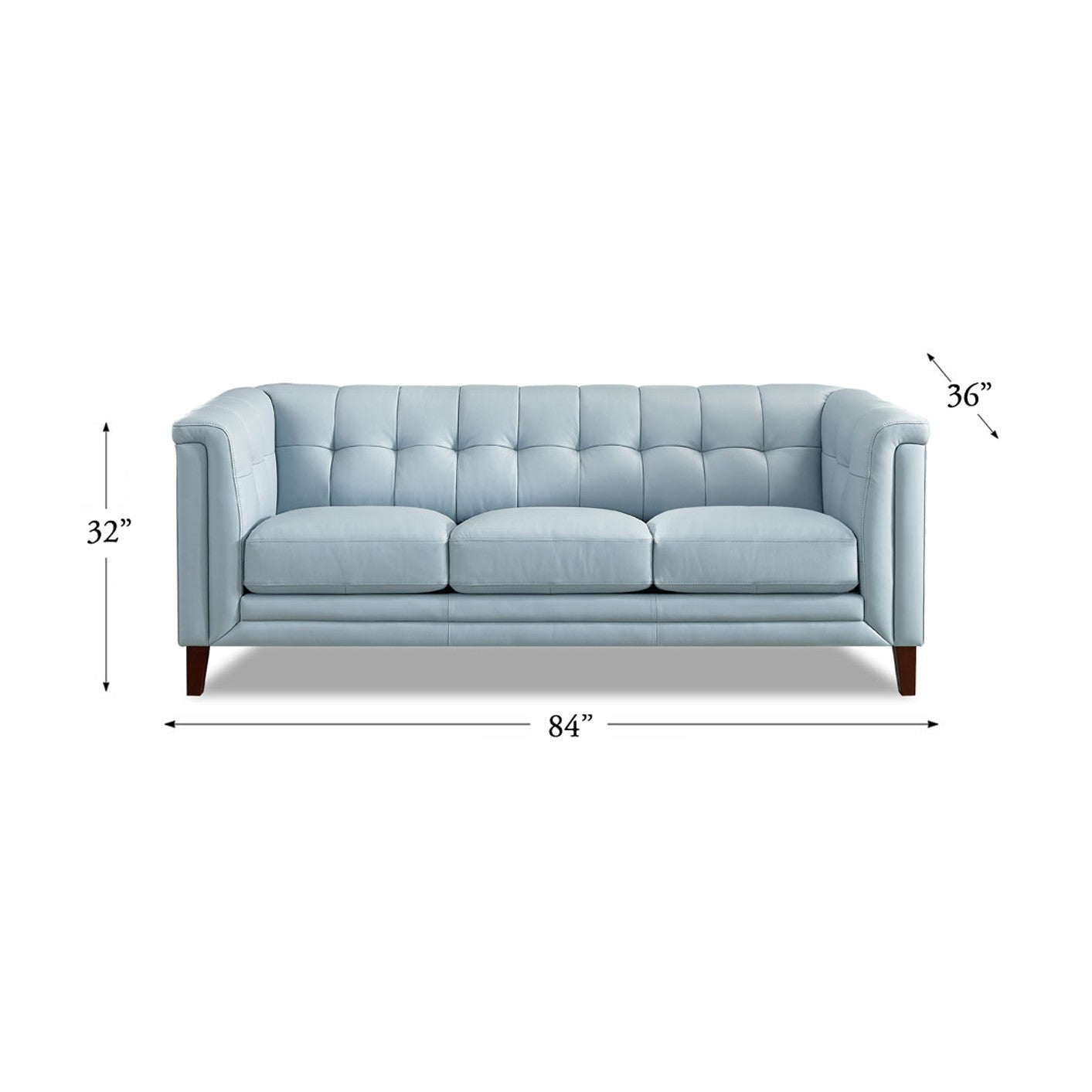 Energize your living room with the vibrant Arvon Leather Collection, a dynamic ensemble full of flair. Designers have masterfully reimagined a classic mid-century modern design, incorporating a gently curved silhouette, splayed wood legs, and blind biscuit tufting. The tufted shelter arms not only soften the overall look but also add a touch of warmth and sophistication, enhancing the lively and stylish appeal of this striking collection.