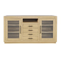 The Auburn Hills 60" Console in Light Oak combines sturdy construction with elegant design, featuring a chunky top and frame crafted from durable rubber wood, MDF veneer white oak, and plywood. It offers practical storage solutions with five drawers and multiple shelves, ideal for organizing essentials while maintaining a clean look. Integrated wire management keeps cords neatly tucked away, enhancing both functionality and aesthetics for a streamlined living space.