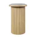 The Auden Sofa Table in Natural features a clean, circular tabletop that enhances any space with a modern aesthetic. Crafted from MDF with American white oak veneer, it offers durability and a refined look, while the solid rubberwood fluted base adds texture and architectural interest. This expertly designed piece combines style and craftsmanship, making it a versatile addition to contemporary interiors.