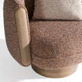 Wrapped in a richly textured upholstery fabric, this chair offers premium comfort with its deep seat, plush cushioning, and supportive structure. The inset rubberwood arm panels and warm wood tones create a contemporary yet inviting aesthetic that blends seamlessly with modern, Scandinavian, and organic interiors.