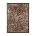Bronze Beauty I and Bronze Beauty II are handmade original artworks that celebrate the elegance of nature. Each piece features intricate leaf motifs that evoke the serenity of a forest setting. The richly textured canvases use warm earthy tones and delicate silver line work to create a natural and organic feel. Both artworks are hand embellished and complemented by a wood look frame in deep walnut hues. Finished under glass, they offer timeless depth and protection while enhancing the atmosphere of any room