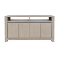 The Brownstone 60" Media Console in Sand combines solid pine and pine veneer construction for sturdy, lasting durability. Its open shelving design offers easy access to media components, while the ample hidden storage area keeps clutter out of sight, maintaining a clean and organized entertainment space. This console balances functionality with natural warmth, making it an expert choice for enhancing any living room setup.