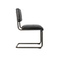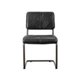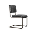 This dining chair combines sleek design with premium comfort. Featuring a genuine leather seat and back, it offers a luxurious feel that's built to last. The cantilever base adds a modern, sculptural touch, creating visual interest while providing flexible support. Its bold black finish makes it a striking statement piece for any dining space.