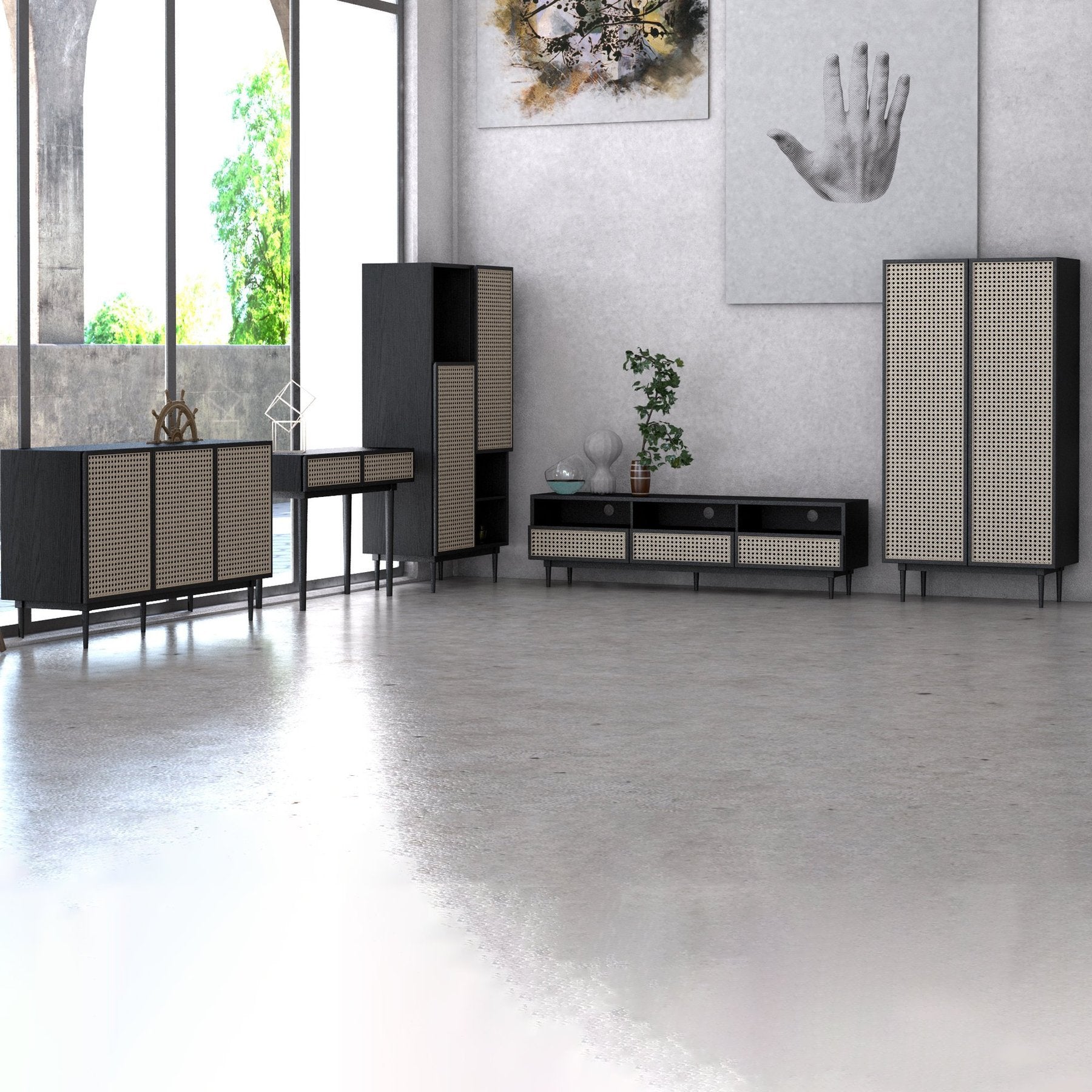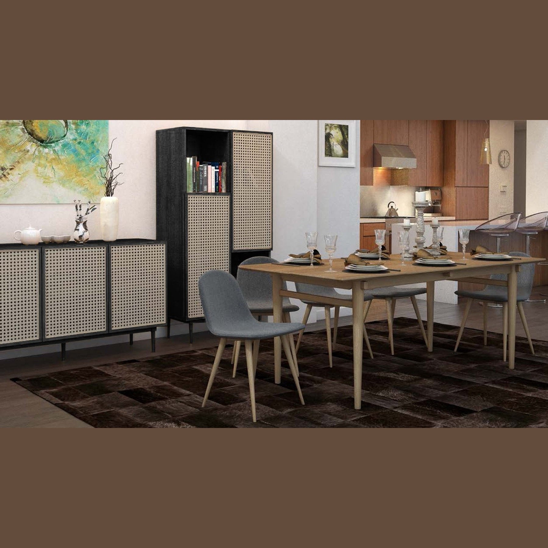 Floor Model Cane Bookcase With Full Doors
