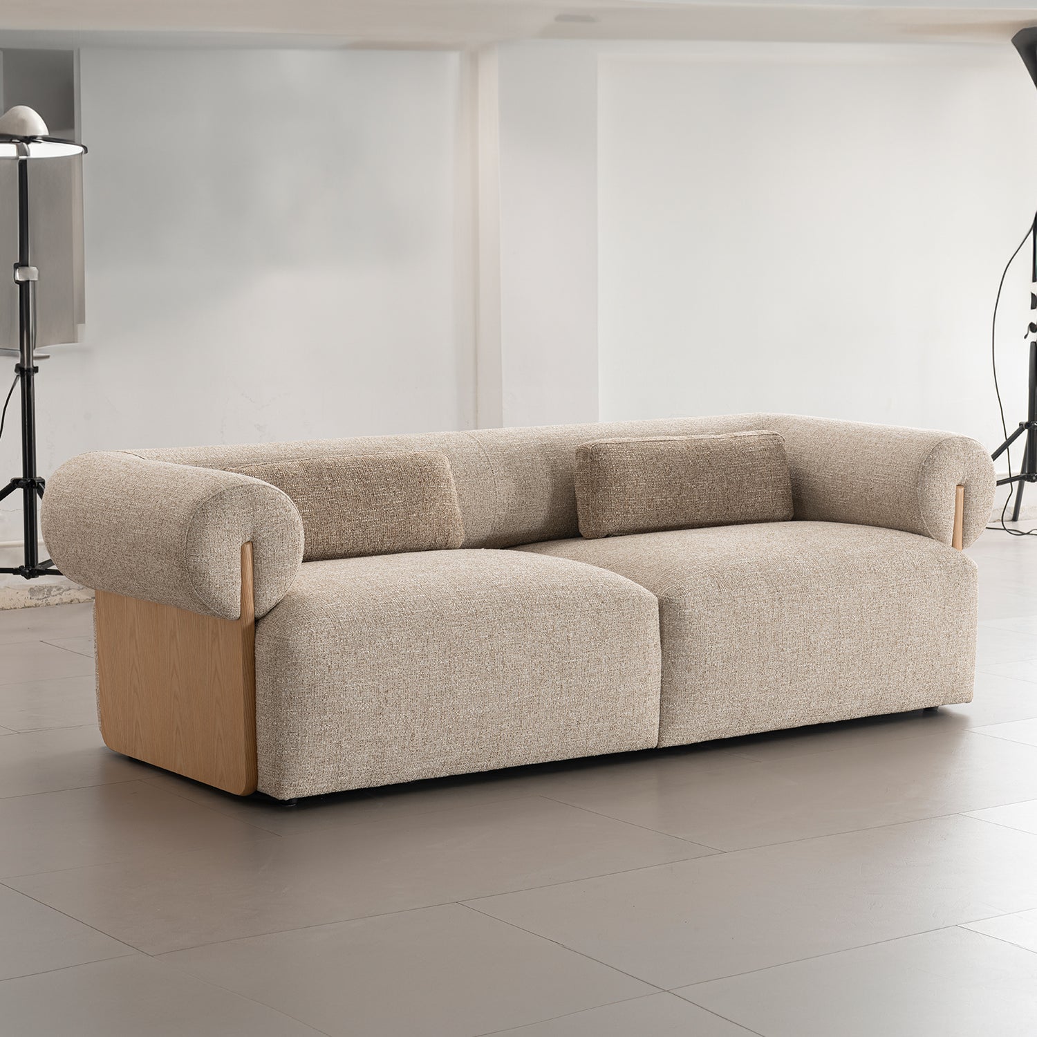 The Cillian 3 3-seater fabric Sofa offers a perfect blend of modern design and luxurious comfort. Crafted with an ash veneer frame and solid pine wood legs, it combines durability with elegance. The high-density foam and fiber filling ensure superior support, while the soft mixed weave fabric cover adds texture and style to any space. Ideal for creating a statement in your living room.