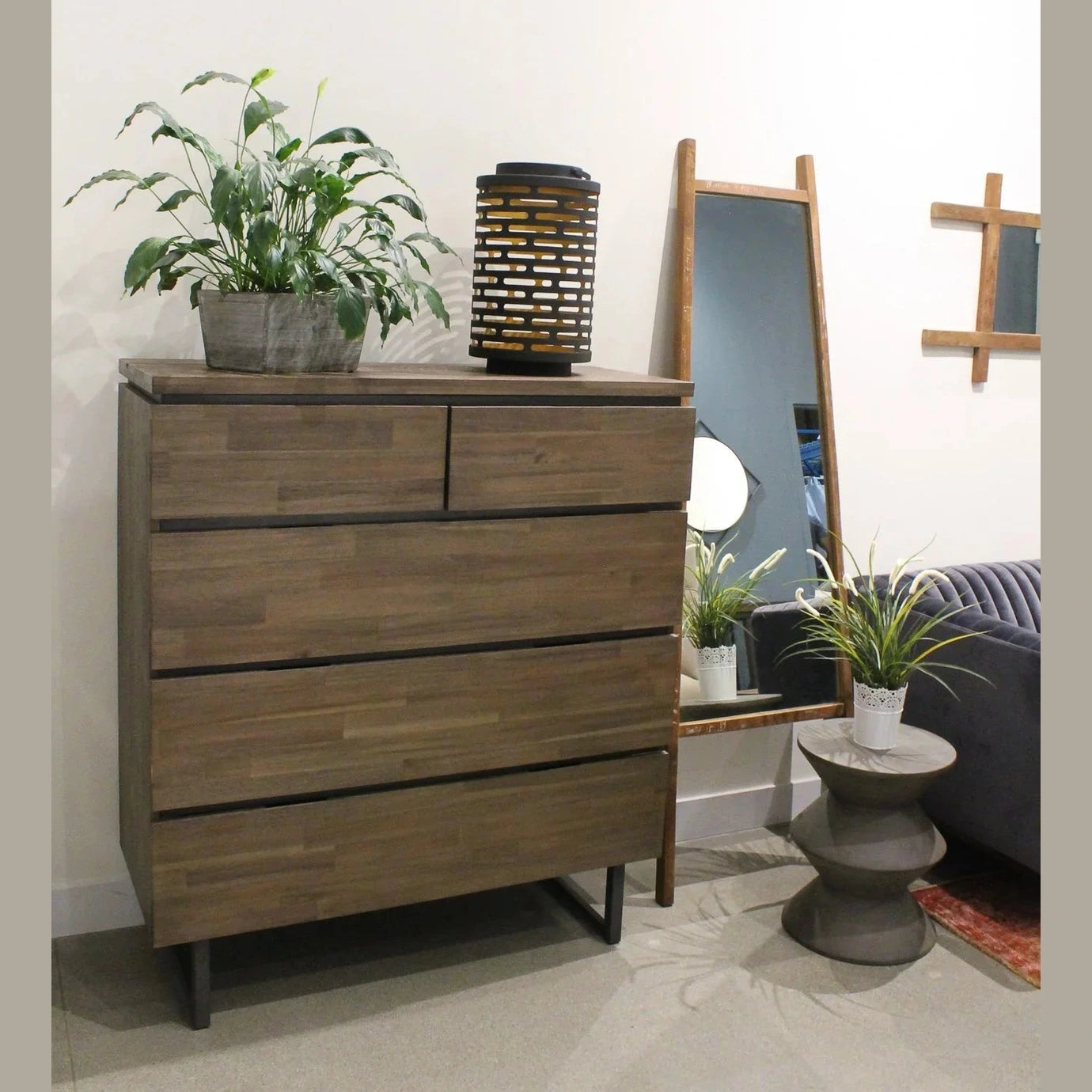 This piece features recycled teak wood, which provides durability and sturdiness. The wood is sourced from support beams and outer panels of old houses which gives each piece a unique character.