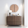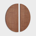 Elevate your space with our round wooden wall decor – a 32-inch creation divided into two 32" x 16" halves, each adorned with an intricately carved pattern on deep brown wood. With its modern appeal and natural beauty, this piece perfectly harmonizes with contemporary, tropical, or coastal aesthetics, adding a touch of artistry to any room. Hang it vertically or horizontally to suit your unique style and space.