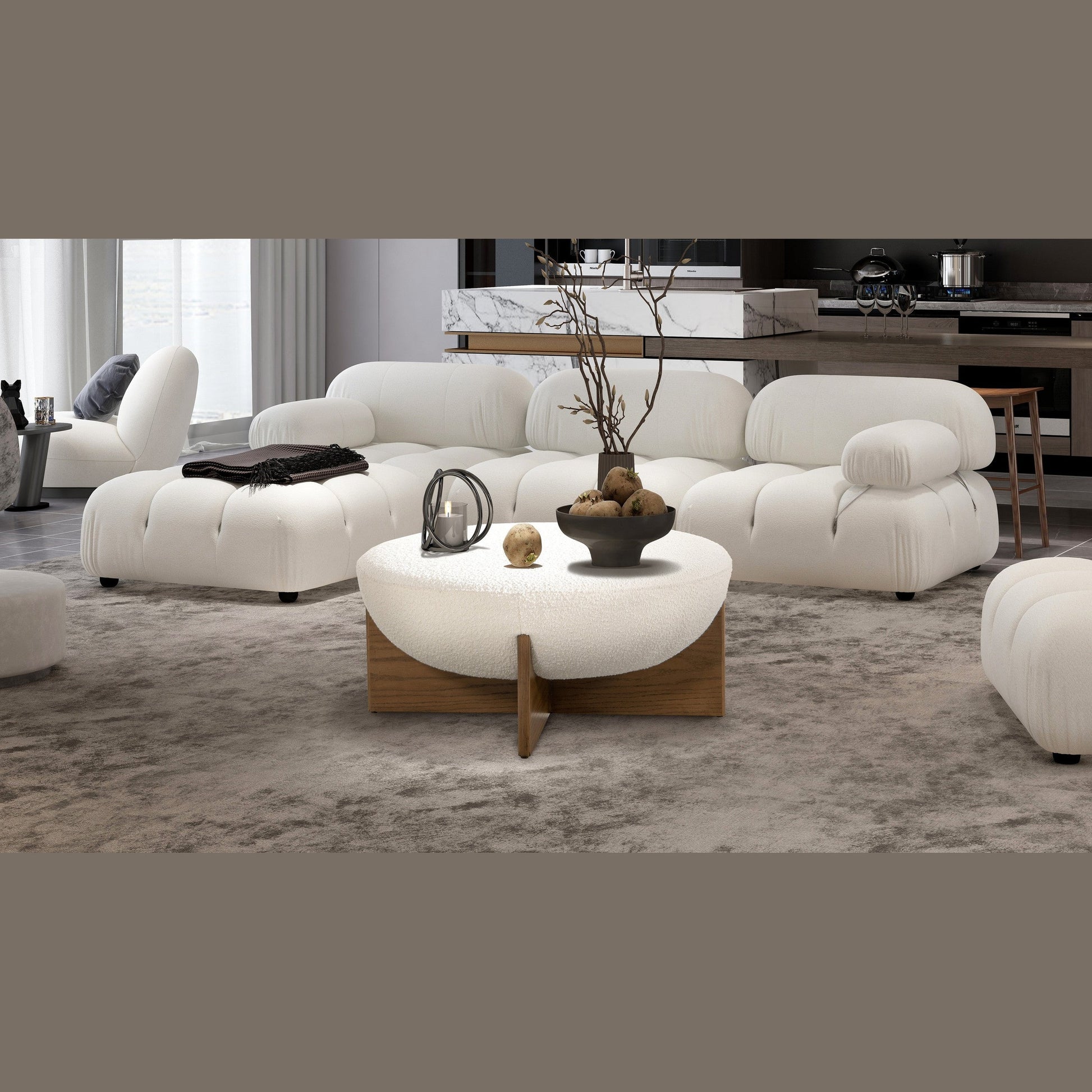 Elara Round Ottoman - Boucle