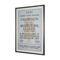 "Ephemera Architecture" by The Vintage Collection is a meticulously crafted piece capturing the timeless elegance of architectural design showcased in a historic exhibition poster from 1921. The artwork features crisp typography and intricate golden detailing set against a soft blue backdrop, evoking a sense of sophistication and history. This framed piece not only celebrates a pivotal cultural event but also serves as a tribute to the artistry of design and font.