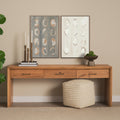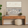 "Equilibra IV" by Studio M Is a captivating exploration of abstract minimalism, featuring a series of circular impressions that evoke a sense of rhythmic harmony. The piece is hand-embellished with textured layers of soft creams and warm taupes, offering a serene yet dynamic visual experience. Encased in an elegant, slim dark wood frame, this artwork exudes sophistication, making it a perfect focal point for any modern space.