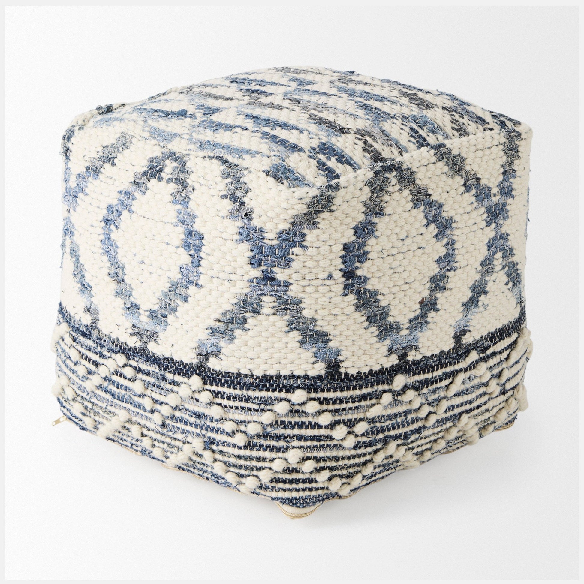 Eshana 16.0L x 16.0W x 16.0H Cream Wool and Denim Patterned Pouf