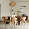 A compact dining solution with sculptural legs and a warm mango wood finish. Its space-conscious design seats six comfortably without compromising modern style.