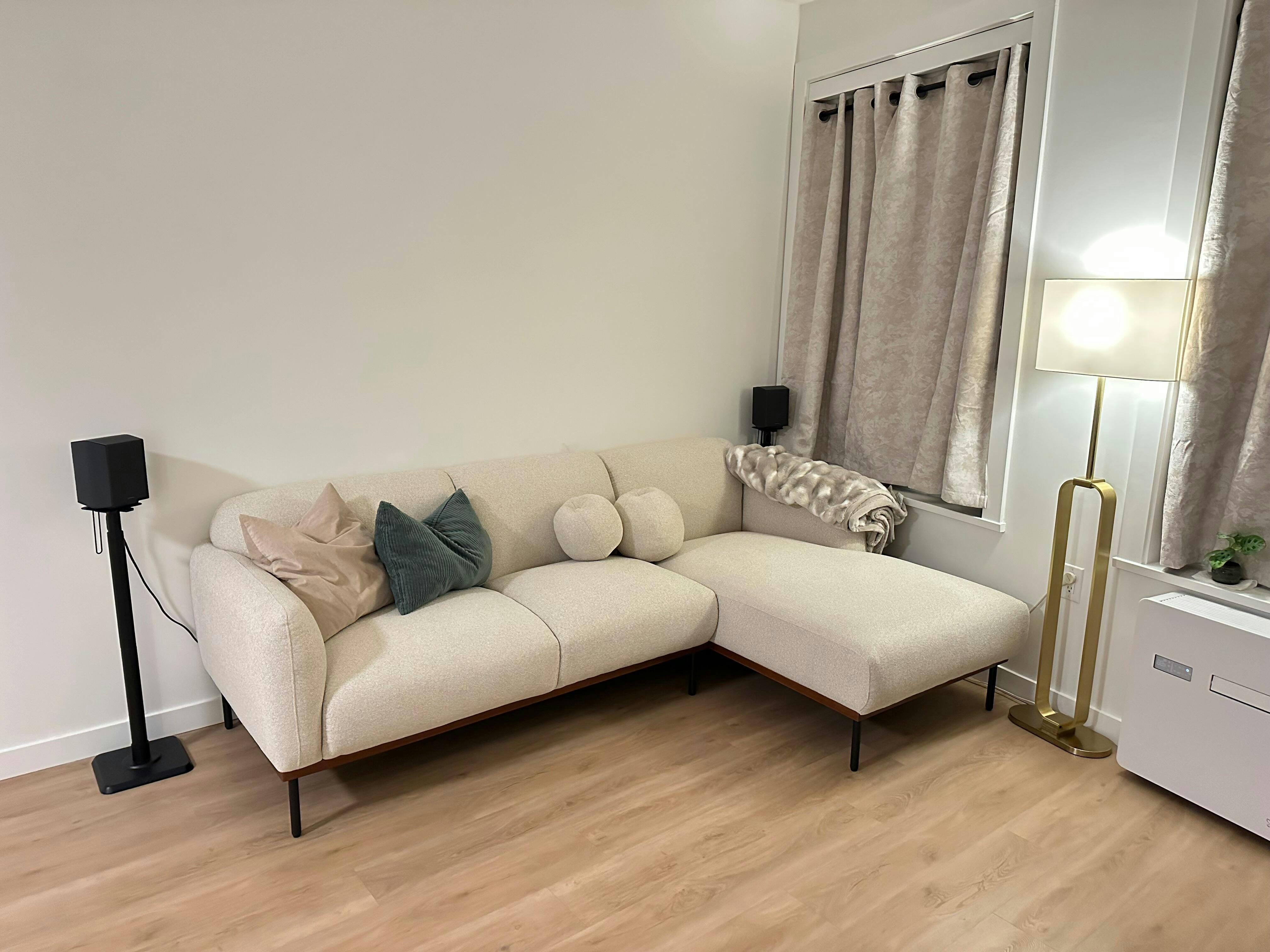 The Genea Sectional offers spacious comfort and modern style for family living rooms. Built with a solid wooden frame reinforced by durable plywood, it ensures long‑lasting stability. Plush foam cushioning provides firm yet cozy seating, while the 100% polyester Believe fabric adds a smooth beige finish. Sleek metal legs enhance durability and contemporary appeal. With its roomy design and versatile layout, this sectional is perfect for entertaining guests or relaxing evenings at home.