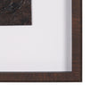 Grouped Bricks" by Studio M is a striking diptych that presents a captivating array of textured, dark brown panels enriched with subtle metallic copper tones. These highlights catch the light and enhance the intricate, hand-embellished details, evoking the raw beauty of natural elements with a sophisticated edge. The composition’s rich textures and warm sheen create a sense of depth and organic elegance. Each handmade original is framed under glass in a deep mahogany wood-look frame, blending timeless charm with a refined, contemporary finish - perfect for elevating any interior space.