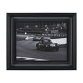 "Neck and Neck" by Ben Wood is a striking photographic art print capturing the exhilarating moment of two vintage race cars in motion, evoking the spirit of classic motor racing. Rendered in timeless black and white, the image is accentuated with hand embellishments that lend a tactile depth, enhancing its dramatic textures. Framed elegantly, this piece is a testament to the thrill of speed and the allure of bygone automotive elegance.