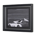 "The Curve" by Ben Wood is a dynamic glimpse into the exhilarating world of vintage racing, capturing two sleek cars in a powerful black and white tableau. This hand-embellished framed photographic art print exemplifies striking contrasts, with textured metallic highlights that add depth and energy to the scene. Evoking the thrill of speed and the elegance of classic design, it's a timeless piece for any discerning collector.