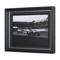 "Apex" by Ben Wood is a captivating hand-embellished framed photographic art print capturing the thrilling essence of classic car racing. The monochrome palette and sharp details highlight the dynamic movement of vintage race cars against a backdrop of eager spectators, evoking a sense of nostalgia and speed. The textured embellishments add depth, bringing the historic race to life with a timeless elegance.