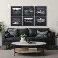 - Color Palette: Monochrome tones - deep blacks, grays, and whites for a timeless racing aesthetic