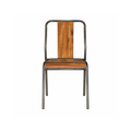 The Helvyn Chair combines rustic charm with modern utility. Made from acacia wood and veneer, it features a sleek black metal finish that adds a contemporary touch. Its lightweight and stackable design make it perfect for versatile dining spaces. Durable and stylish, it offers a warm wood tone that pairs well with various interiors. The chair is sold in sets of four, providing both practicality and aesthetic appeal.