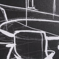 "Interior Sketch I & II" by Mercana Studio is a striking art print capturing the sleek simplicity of modern interior design through bold, white linework on a deep charcoal backdrop. The minimalist portrayal of a chic living space, defined by clean angles and soft curves, evokes a sense of calm sophistication. Meticulously hand-embellished, matted under glass, and framed, this piece embodies an inspired blend of contemporary elegance with artisanal texture.