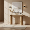 Add practical surface space to your living room, entryway, or hallway with this console table in Brown. Built from durable oak for lasting use, it features a compact footprint that fits neatly behind sofas or along walls. The softly rounded profile and edges lend a warm, approachable look. Its versatile design makes it an easy addition to both modern and classic interiors.