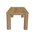 This dining table in Brown combines durable oak and oak veneer construction for lasting strength. Its rectangular silhouette with block-style legs provides a sturdy foundation and timeless design. Ideal for spacious dining rooms or open-plan kitchens, this table offers plenty of surface area for family meals and gatherings.