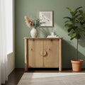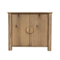 This sideboard in Brown provides practical storage with two concealed cabinet doors, ideal for organizing dining essentials or living room items. Its cracked oak pattern texture adds subtle character, while rounded legs and soft edge details create a smooth, inviting silhouette. Compact and versatile, it fits well in dining rooms, entryways, or smaller living spaces.