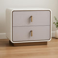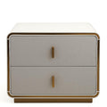 Designed for homeowners who value refinement and practicality, this nightstand combines graceful curves, a Glossy Grey-Beige finish, and subtle gold accents to create an effortlessly elegant bedside statement.