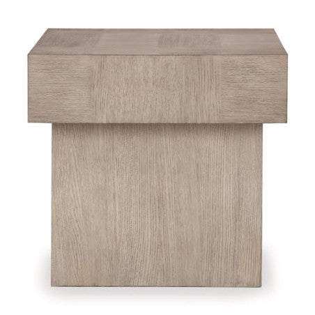 The Jorlaina Square End Table blends rustic warmth with timeless design, making it equally at home in traditional or modern settings. Crafted with a textural light gray finish, it offers a casual modern look while the double plinth base exudes a classically contemporary sensibility. A dovetail‑constructed drawer with ball‑bearing glides provides smooth storage, and the lower shelf is perfect for books or decorative accents. With its refined detailing and versatile style, this table is just the spot to display photos or décor accents, adding character to any living space.