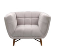 Crafted with high-density soft foam, the chair ensures plush comfort, while the floating seat design, gracefully perched above solid wood legs, creates a distinctive silhouette that blends modern sophistication with mid-century charm. Expert stitching, clean lines, and thoughtfully proportioned dimensions make it a standout piece in living rooms, lounges, reading nooks, or any space where style and relaxation meet.