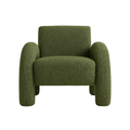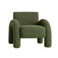 The Leni Accent Chair features a sculptural, modern silhouette upholstered in a premium green boucle fabric. This soft-textured material offers a warm, elevated look while providing added comfort. Built with a sturdy pine frame and supportive foam, Leni delivers both durability and a cozy seating experience. Its rounded, contemporary form makes it a standout piece in any living space.