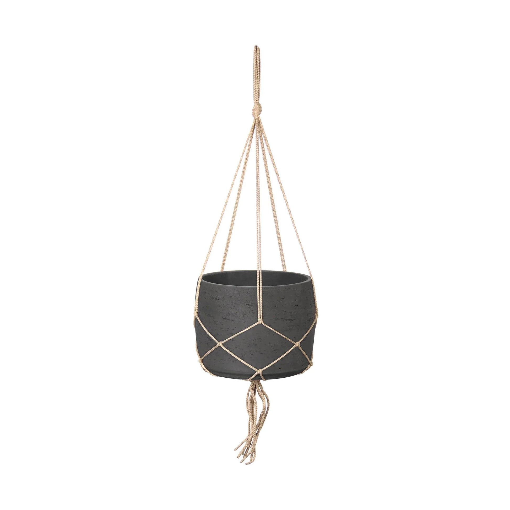 Lorien Hanging Pot With Netting - Charcoal Grey