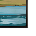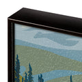 "Montana Go USA (XL)" by Mercana Studio is a vibrant graphic art print capturing the serene majesty of Montana's vast landscapes, featuring grazing bison against a backdrop of towering mountains and lush pine forests. Rendered in rich blues and greens with earthy browns, the piece evokes the untamed beauty of nature, framed elegantly under glass for a polished finish. Part of Mercana's Go Series, this artwork celebrates the timeless allure of America's wild frontiers.