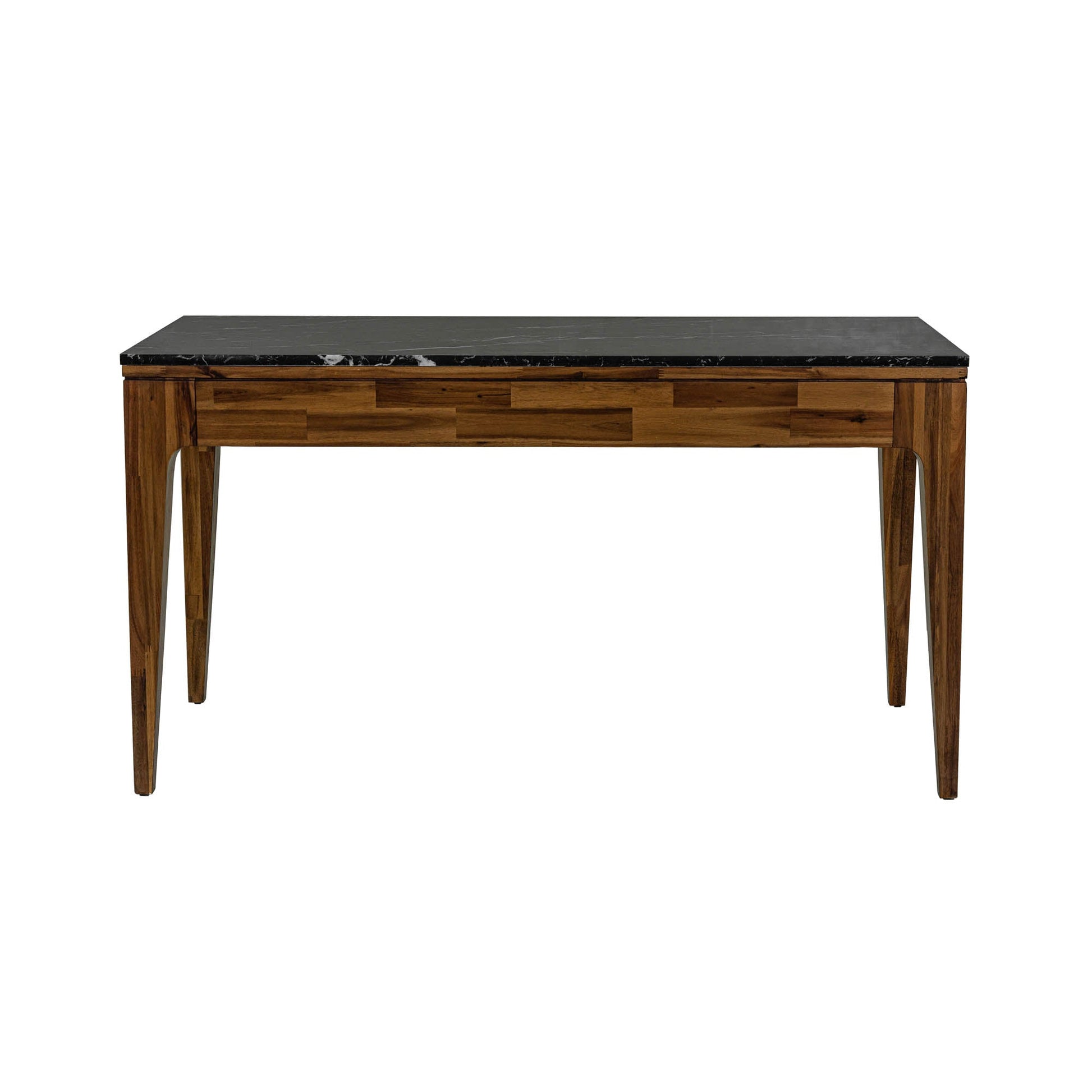 Mid-century style meets modern elegance in the Allure Writing Desk. Crafted from solid Acacia wood in a rich walnut finish, it’s paired with sleek black marble imported from Spain for a refined, upscale look. Brass handles add a subtle touch of luxury, while two soft-closing drawers offer practical storage. Compact yet striking, it’s perfect for home offices or creative corners. A timeless piece that blends function and finesse