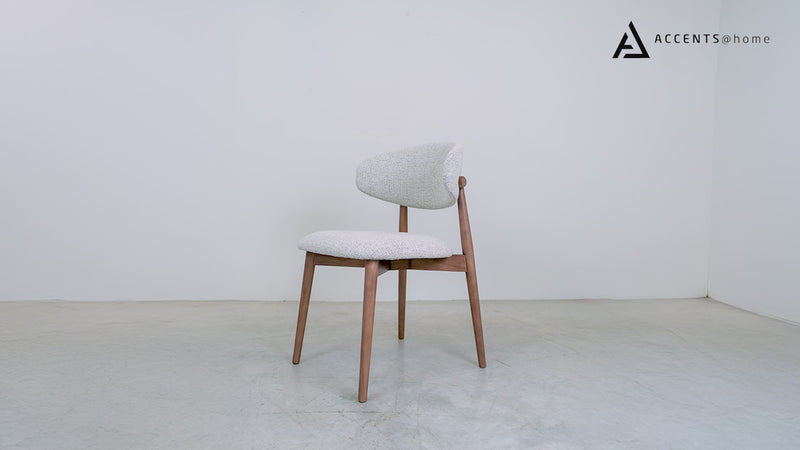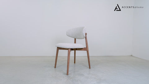 The Nikari Dining Chair in White, Oatmeal or Ivory or Light Grey is an exquisite blend of comfort and style, perfect for adding a touch of elegance to your dining area. Upholstered in a plush Oatmeal or Ivory or Light Grey fabric, this chair offers a luxurious seating experience, making it ideal for long, leisurely meals. The rubber wood legs, finished in a warm walnut natural painting, complement the Oatmeal or Ivory or Light Grey fabric beautifully, mirroring the chair's design as seen in the picture. Its sophisticated color palette and timeless design make it a versatile addition to any dining room.