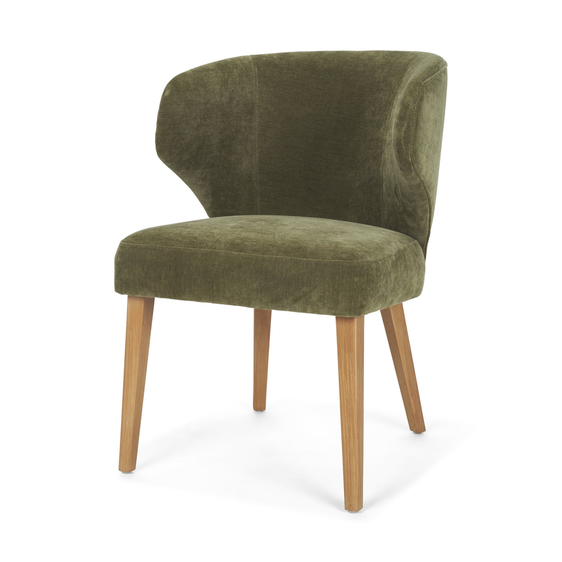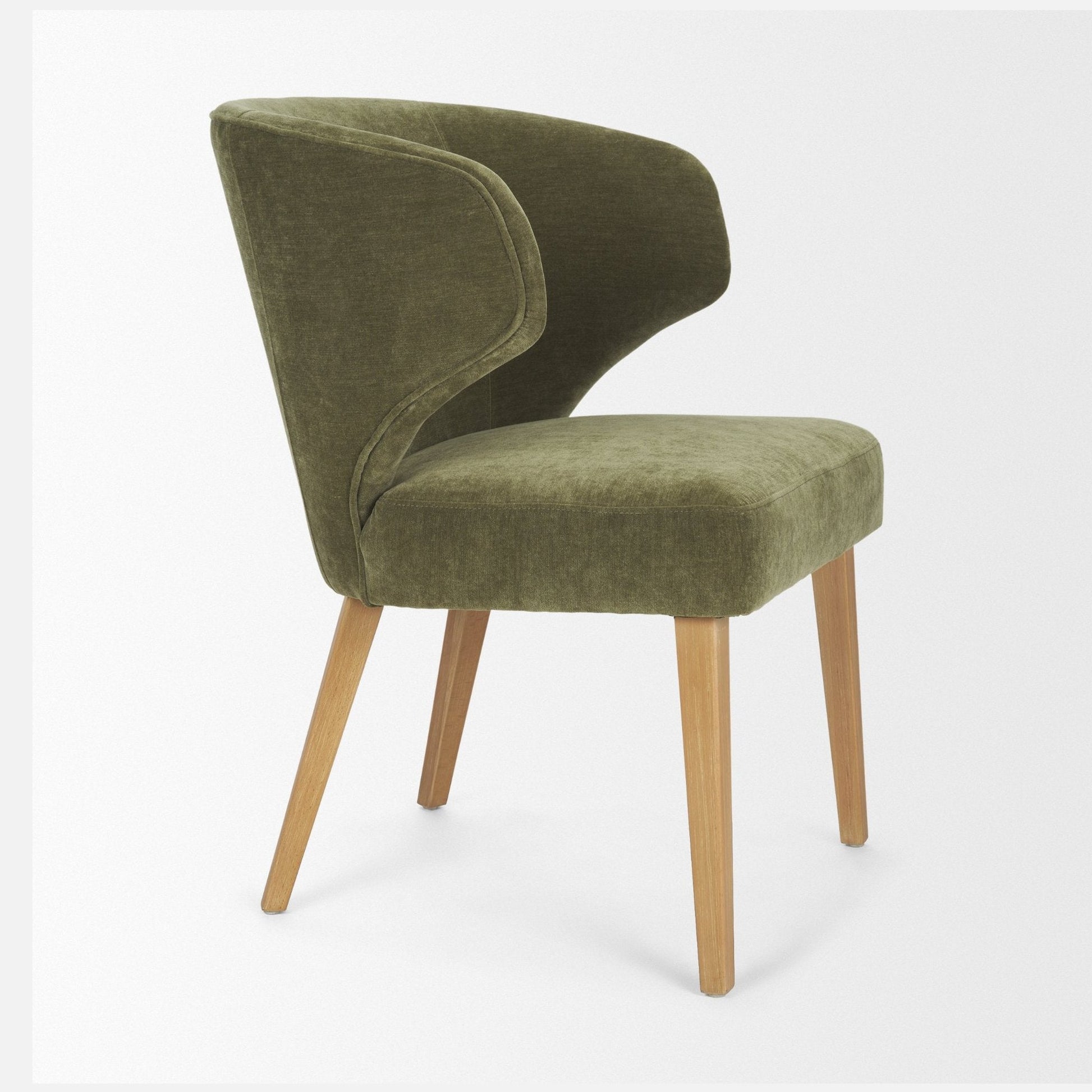 The Niles Fabric Dining Chair embodies a seamless blend of modern elegance and everyday functionality. Its wingback design is enveloped in a rich moss olive fabric, offering both visual appeal and plush comfort. Supported by mid-brown wooden legs, this chair is a testament to refined craftsmanship and timeless style. Perfect for elevating any dining space, the Niles Dining Chair is a sophisticated addition to contemporary interiors.