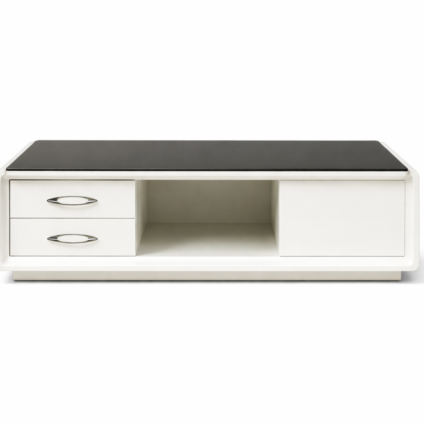 ME01-749 High Gloss White Lacquer Contemporary Coffee Table with 4 Drawers and a Glass Top. Modern design elements create a modern look for your living room making this coffee table a stylish and functional addition. The coffee table has black glass top and while the sides are covered in white lacquer finish. The cocktail table also has storage drawers in the front which makes it easier and convenient for storage.