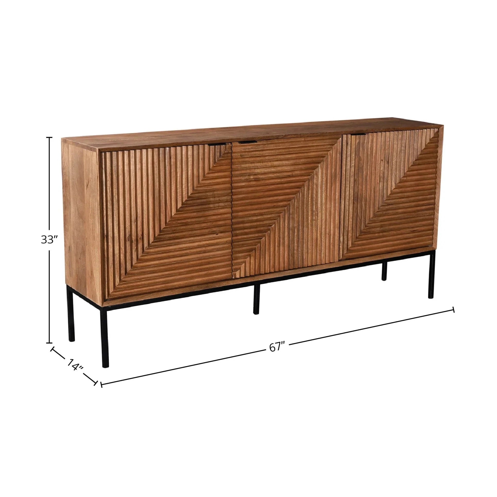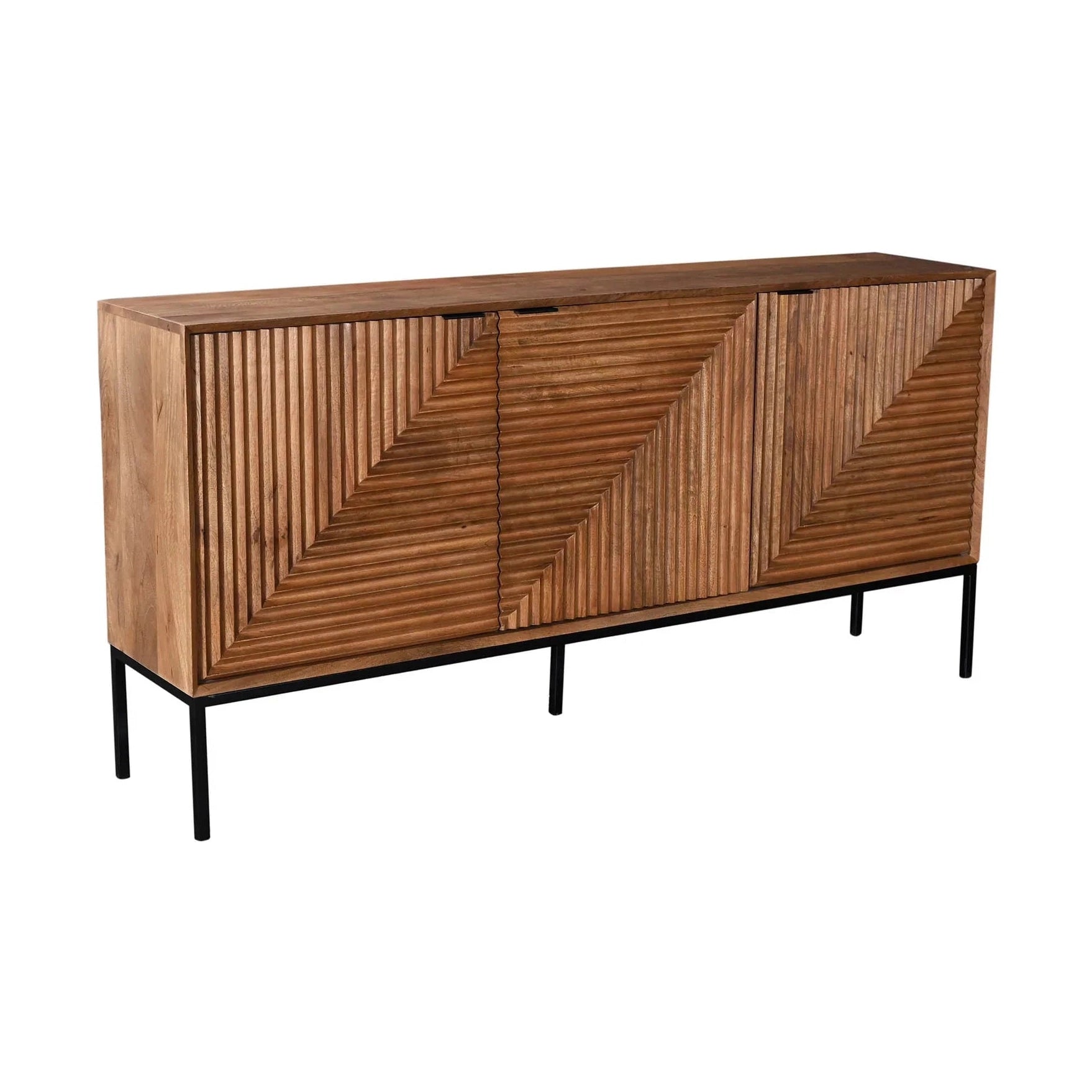 A captivating fusion of natural beauty and modern design. Crafted from solid mango wood in a warm, natural tone, this sideboard embodies the essence of organic elegance. The inclusion of sleek black metal legs not only adds a contemporary touch but also ensures stability and durability.