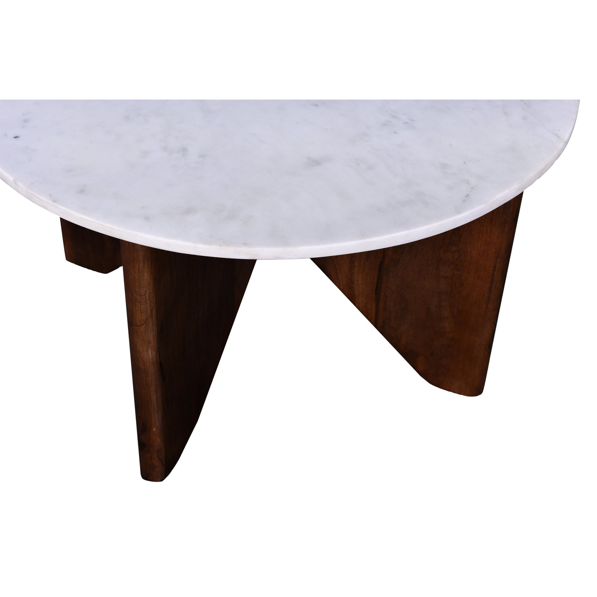 Solid white marble top with engineered wood backing. Solid acacia wood base in a brown finish. The acacia wood used on this product is sustainably sourced.