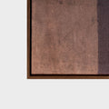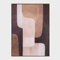 This abstract painting, measuring 40" x 2" x 56", embodies the theme of origin through its series of curved and overlapping shapes in various shades of brown, beige, and white. The minimalist design with smooth transitions between the colors creates a sense of depth and movement, symbolizing the beginning and evolution of forms. The artwork is framed in a simple, thin border that complements the overall aesthetic.