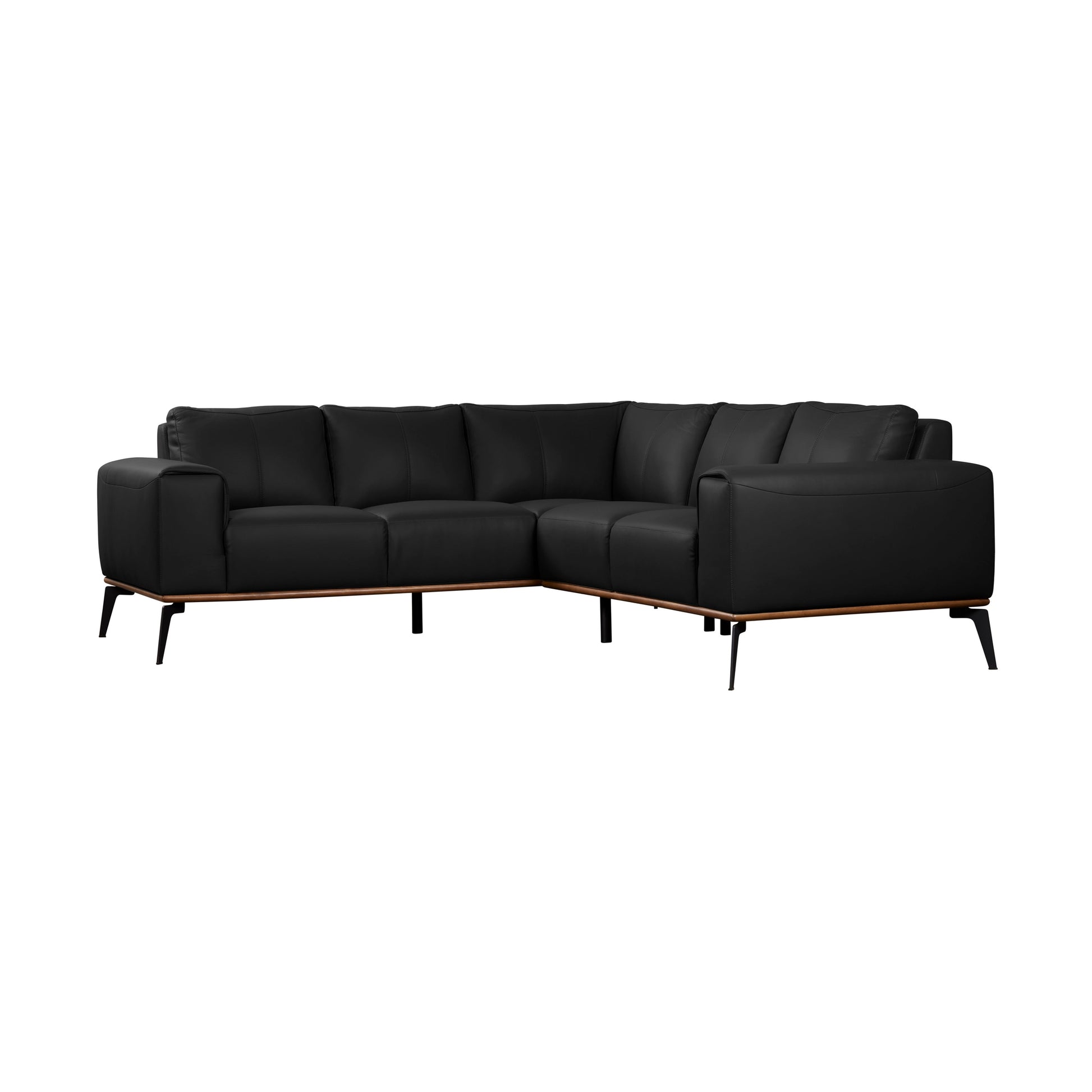 The sectional is elevated on sleek black metal legs, a contemporary touch that complements the classic appeal of the leather upholstery. With generous seating space and a modular design, the Pietro invites you to relax and unwind in style.