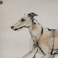 "Playful Pup VI" by Mercana Studio is a captivating sketch capturing the elegance of a graceful greyhound in mid-stride. Rendered in delicate pencil and charcoal, subtle hues of beige and brown bring a touch of warmth to the lithe figure. The textured paper background adds depth, evoking a sense of natural freedom and unbridled motion, making it a timeless piece of dynamic artistry.
