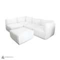 This set includes 2 Corner pieces, 2 Armless pieces, and 1 Ottoman.