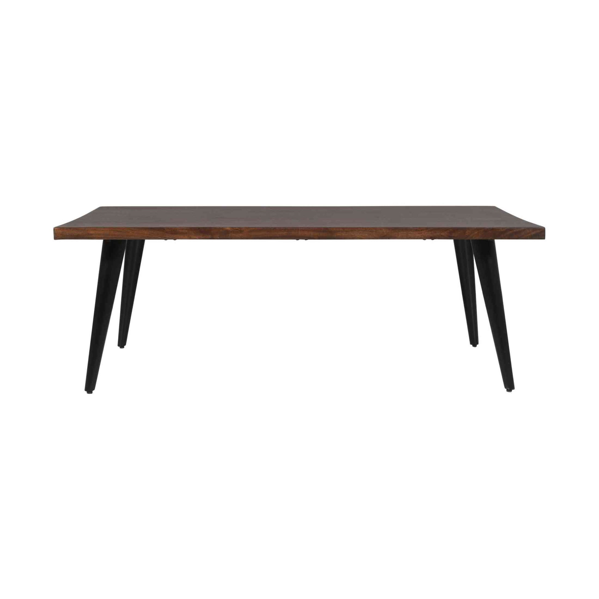 The Prelude Coffee Table blends industrial style with solid craftsmanship. Made from 100% solid acacia wood, its 1.5″ thick rectangular top showcases rich walnut tones and natural grain. Iron legs add contrast and durability, making it a sturdy centerpiece for modern or rustic living rooms. At 50″ wide, it offers generous surface space without overwhelming the room. A timeless piece that balances strength and style.