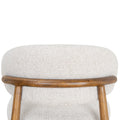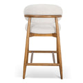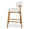 The Rhea Counter Stool features soft linen upholstery on a solid wood frame, offering a stylish yet comfortable seating option for kitchen islands and counter-height tables.