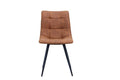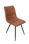 Pull up the Rhodes faux leather dining chair and sit down for a little while. Decorated with attractive box tufting, this lightweight, contemporary chair has a backrest that gently curves into the seat, and both are cushioned for your comfort. The matte black metal legs are square shaped, and they angle out gracefully to give this chair added stability. The Rhodes pairs nicely with several of the dining tables available.