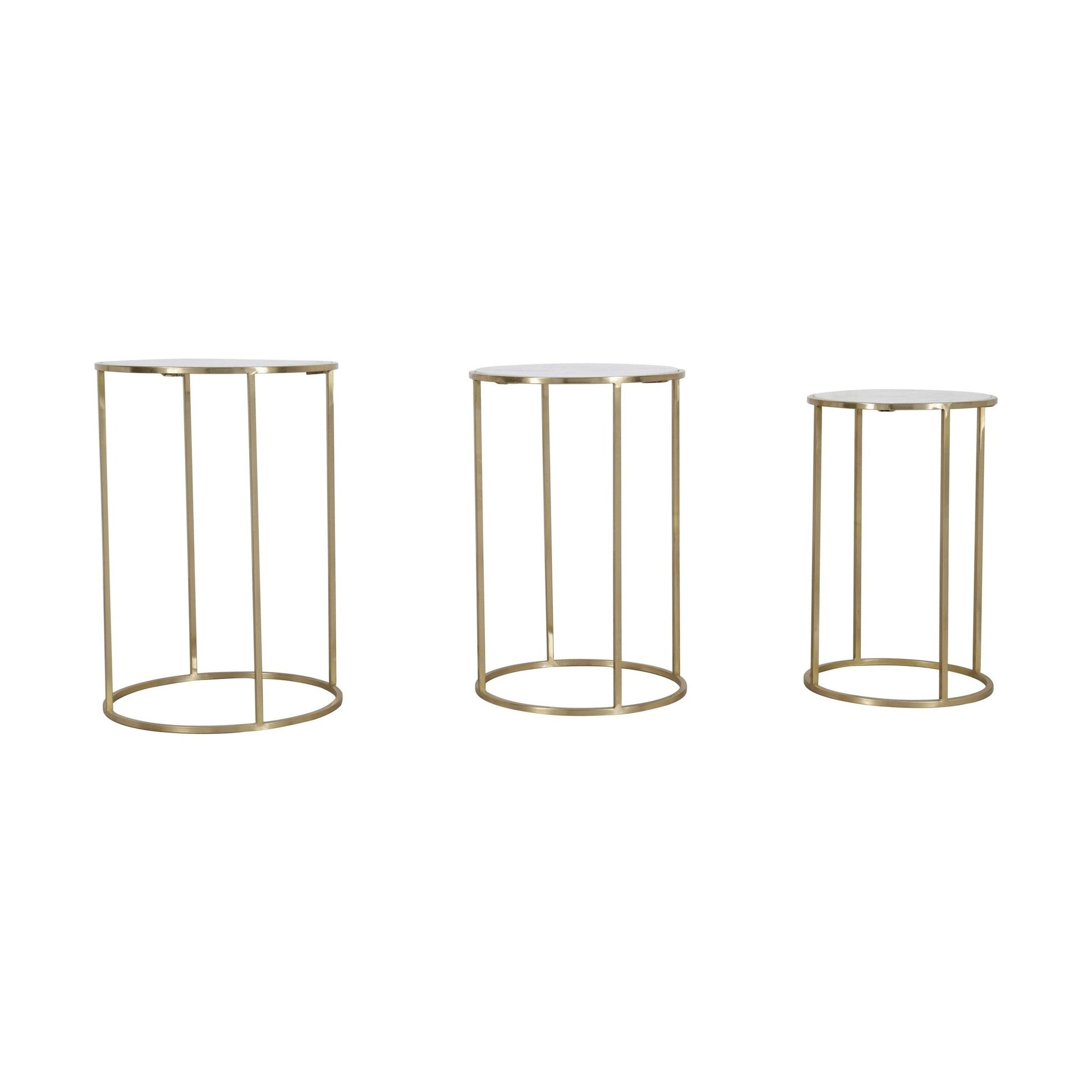 The Riviera Nesting Tables are a study in craftsmanship and versatility. Each piece is handmade by skilled artisans using natural materials such as marble, metal, and hardwood. The set includes three tables in graduated sizes that nest together for space-saving convenience or can be styled separately for layered impact. With a gold finish and artisanal detailing, these tables bring elegance and function to any room.